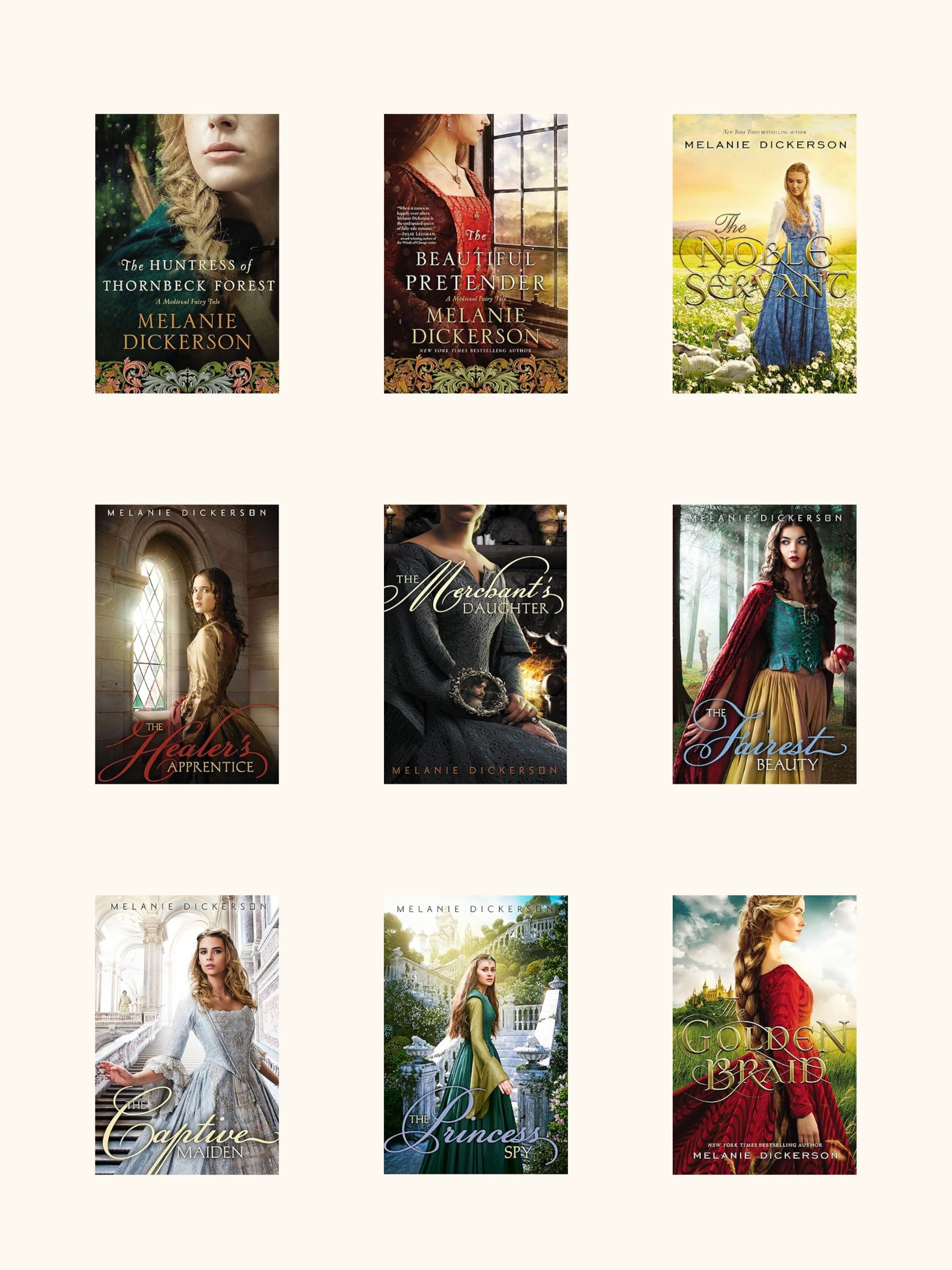 Melanie Dickerson is amazing at taking an ordinary fairy tale and turning it into a wonderful novel. While I'm not a huge fan of the medieval time period, I enjoy her novels, including the bits about castles and knights. I love her spunky heroines and watching her characters battle evil villains.